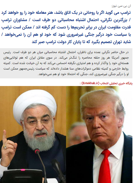 مزدوران رسانه ای آمریکا نیز وارد می شوند تا به هر صورت شده ایران را بین دو امر صاحب اختیار بدانند: نشستن پای میز مذاکره با ترامپ یا جنگ!
